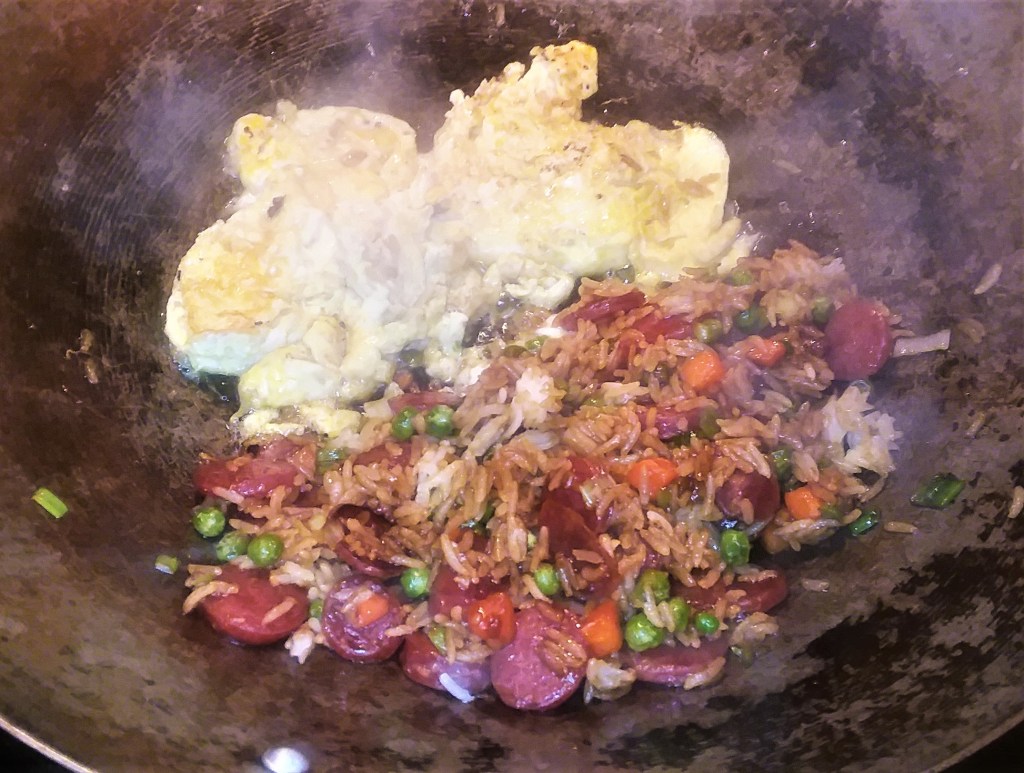 Using my wok for a classic Asian dish – fried rice with eggs and Chinese Sausage!