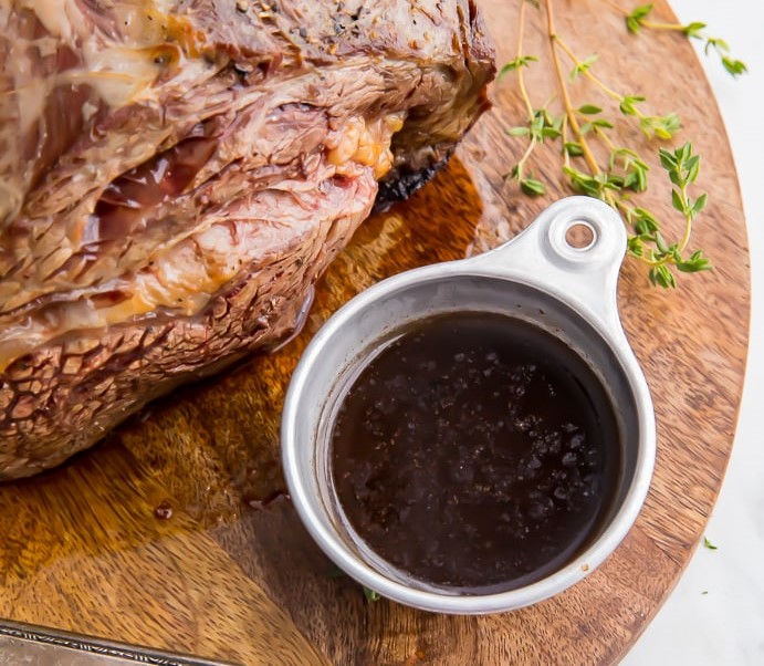 Don’t trust any recipe that claims you can serve au jus without the pan drippings! You can also purchase pre-made jus from the store, but it’s a pale imitation. The best jus comes naturally off of a meat dish as it’s cooking, so long as it’s over a moist form of heat (say, braising instead of grilling).