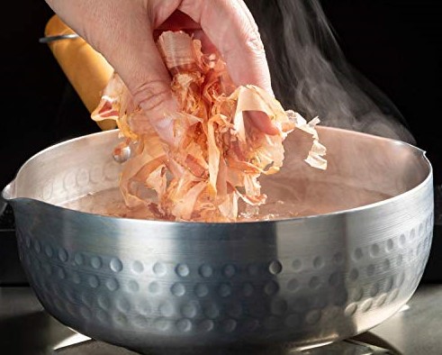 Making Dashi with bonito flakes